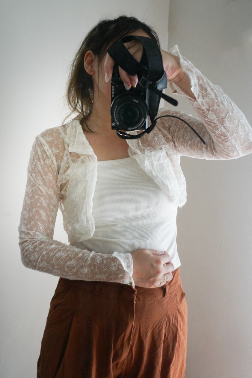 ヴィンテージ調のデザインは、古き良き時代のエッセンスを取り入れつつも、現代のトレンドともマッチするアイテムです。柔らかい白色は、どんなトップスやワンピースにも相性抜群で、コーディネートの幅を広げてくれます。