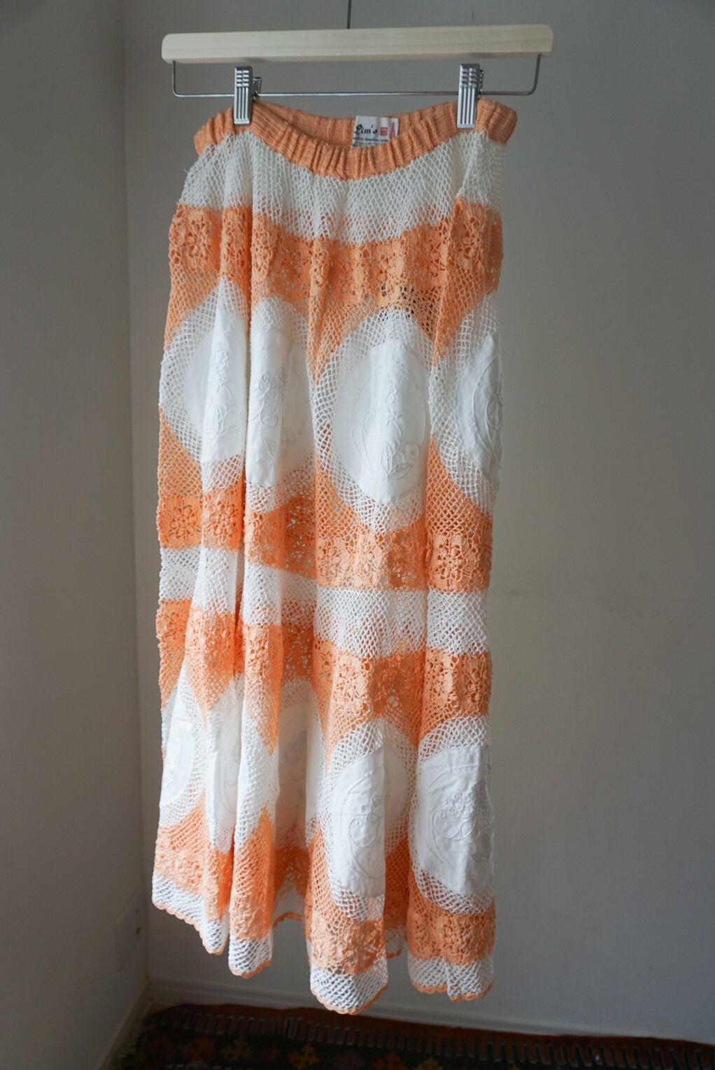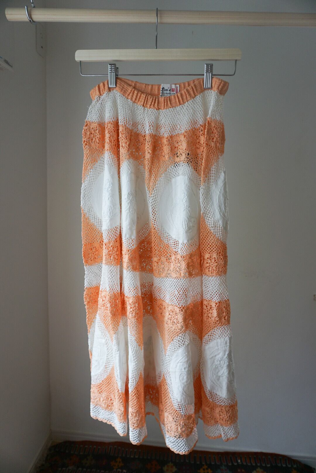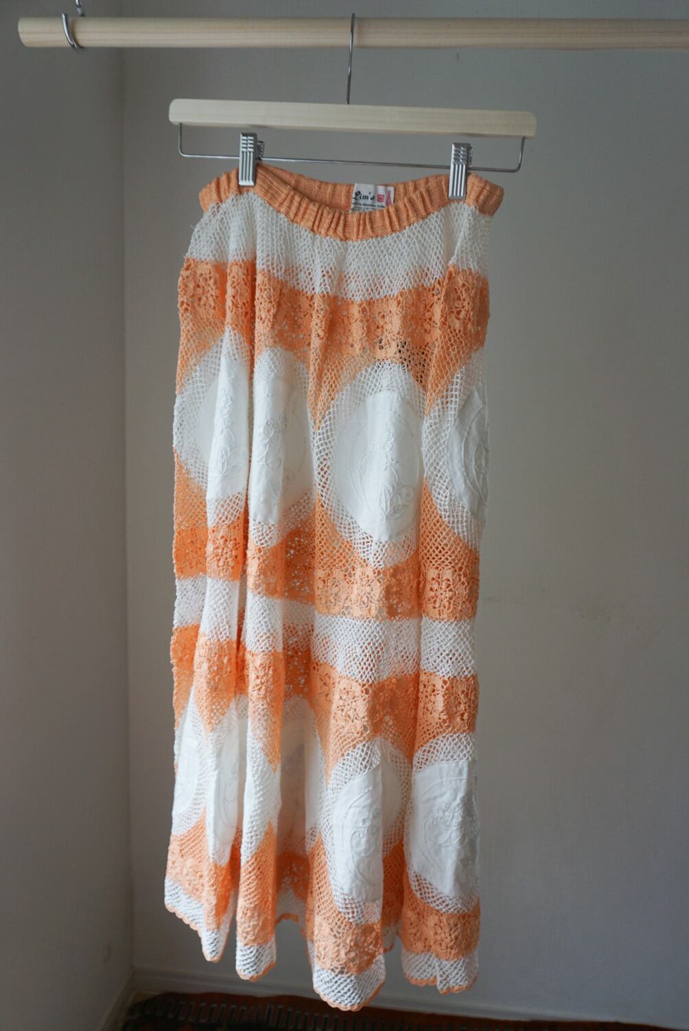鮮やかなオレンジが目を引く、Lim’s vintageのハンドメイドクロシェスカートです。