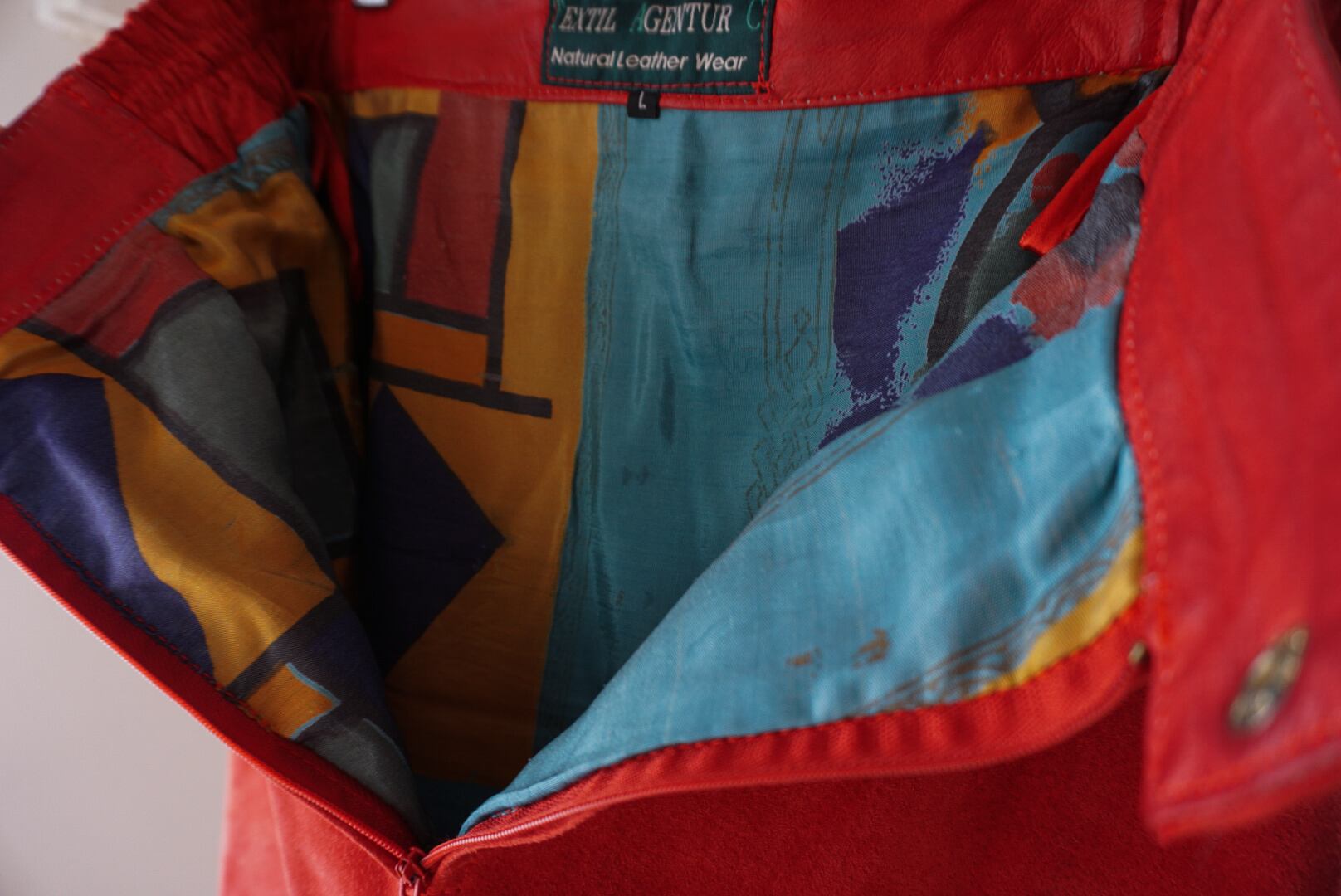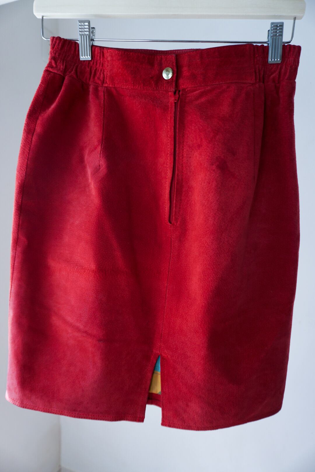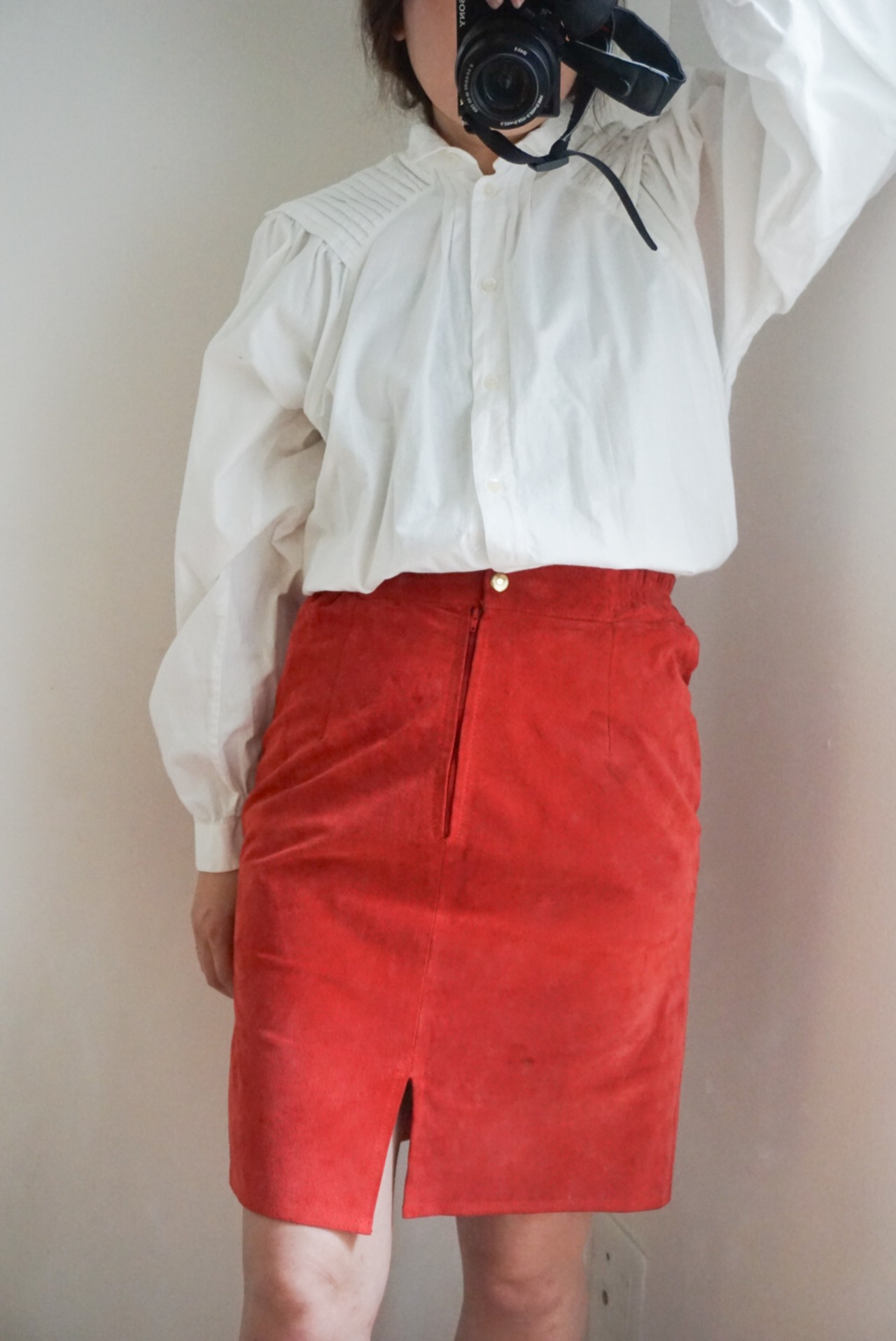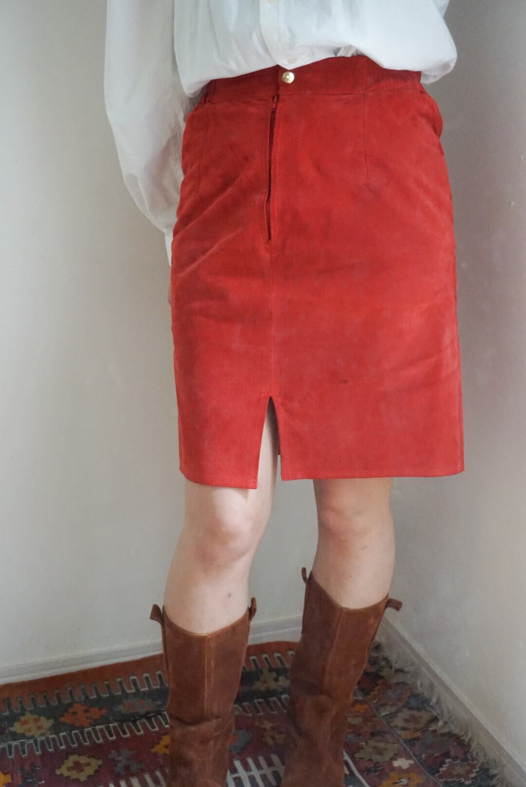 新たに入荷したこのレザースカートは、スタイリッシュな赤い色合いが特徴で、様々なコーディネートにアクセントを加えるアイテムです。