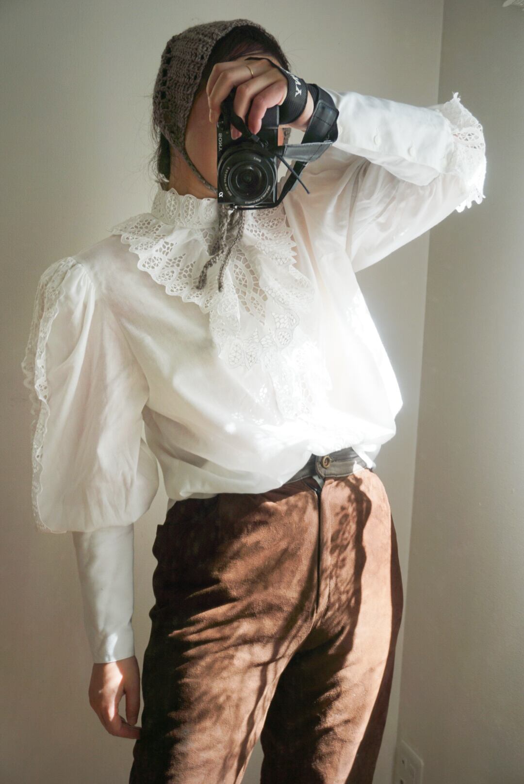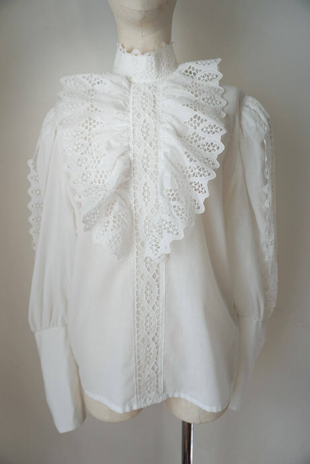 胸元に大きなフリルが特徴的なオーストリアのヴィンテージブラウス。