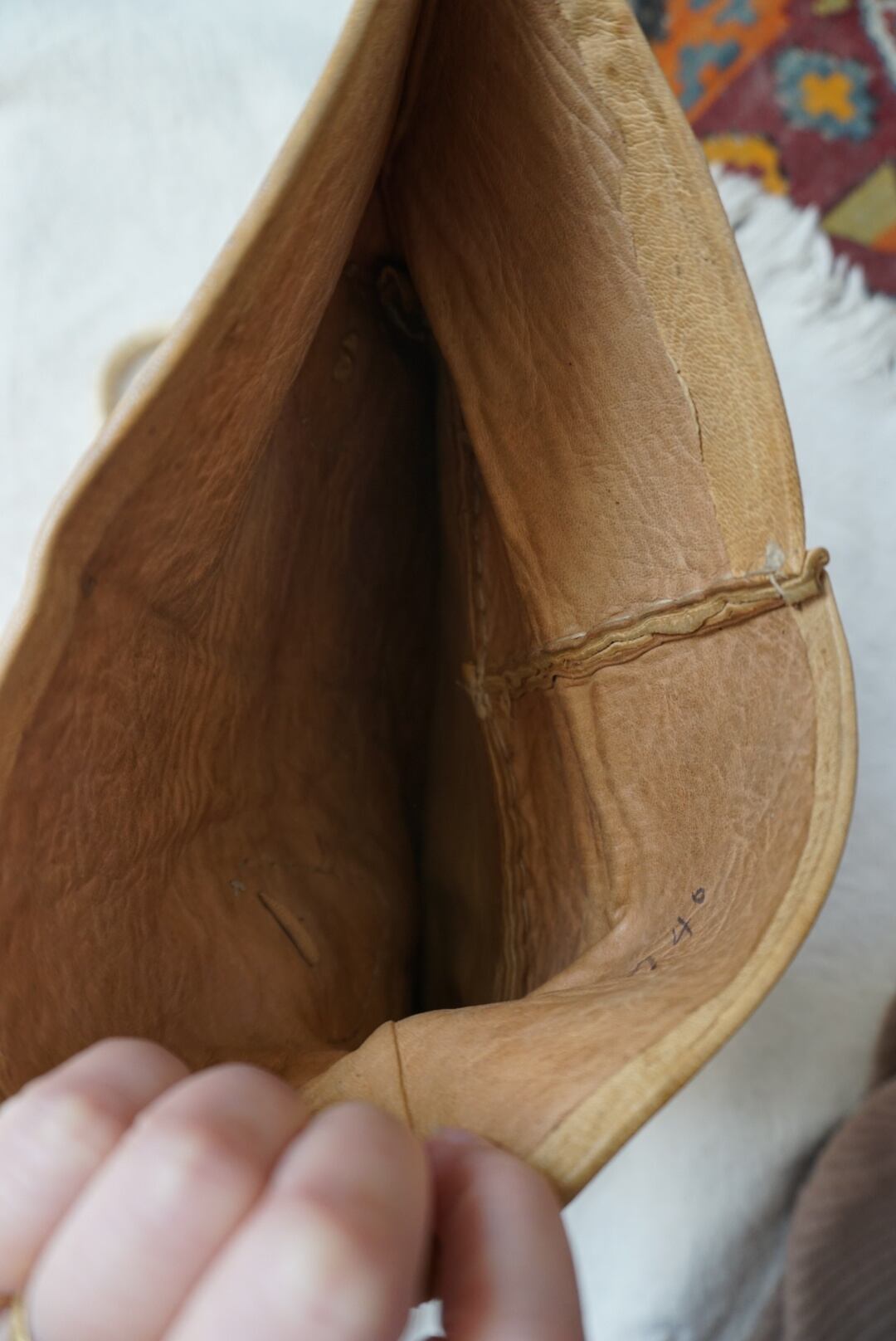 French beige leather hand bag