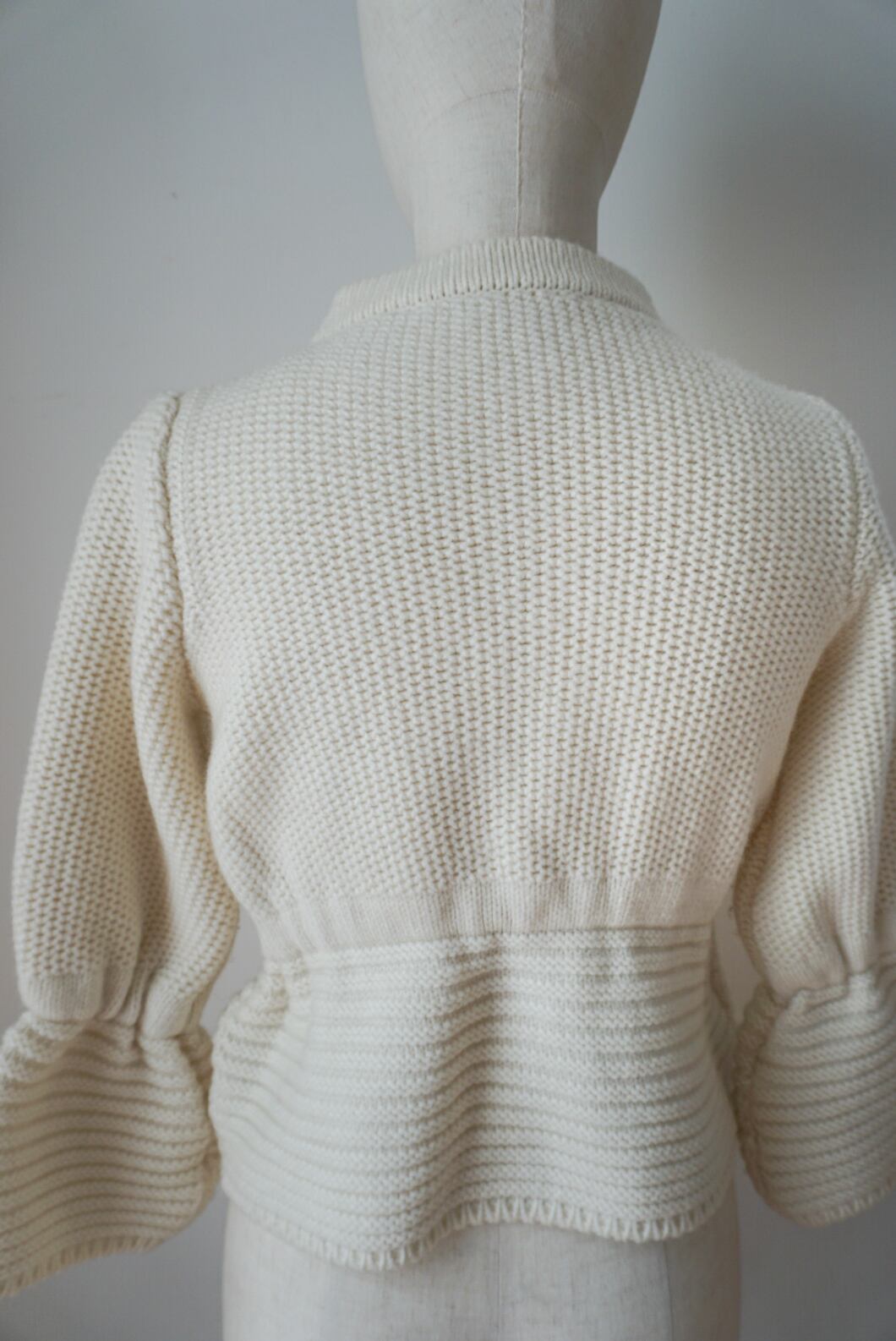 このアイテムは、クラシックなデザインに現代的なエッセンスを加えた魅力的なニットです。ぬくもりのあるクリーム色が、あなたのスタイルに柔らかな印象を与えます。