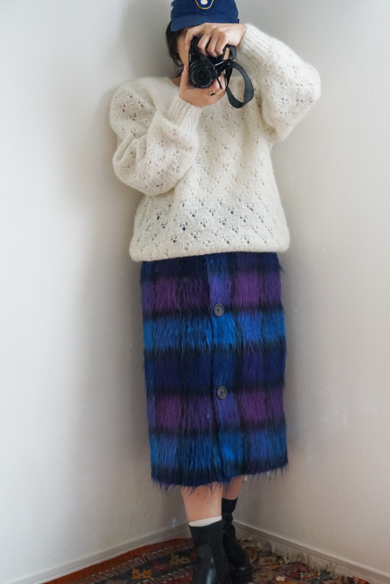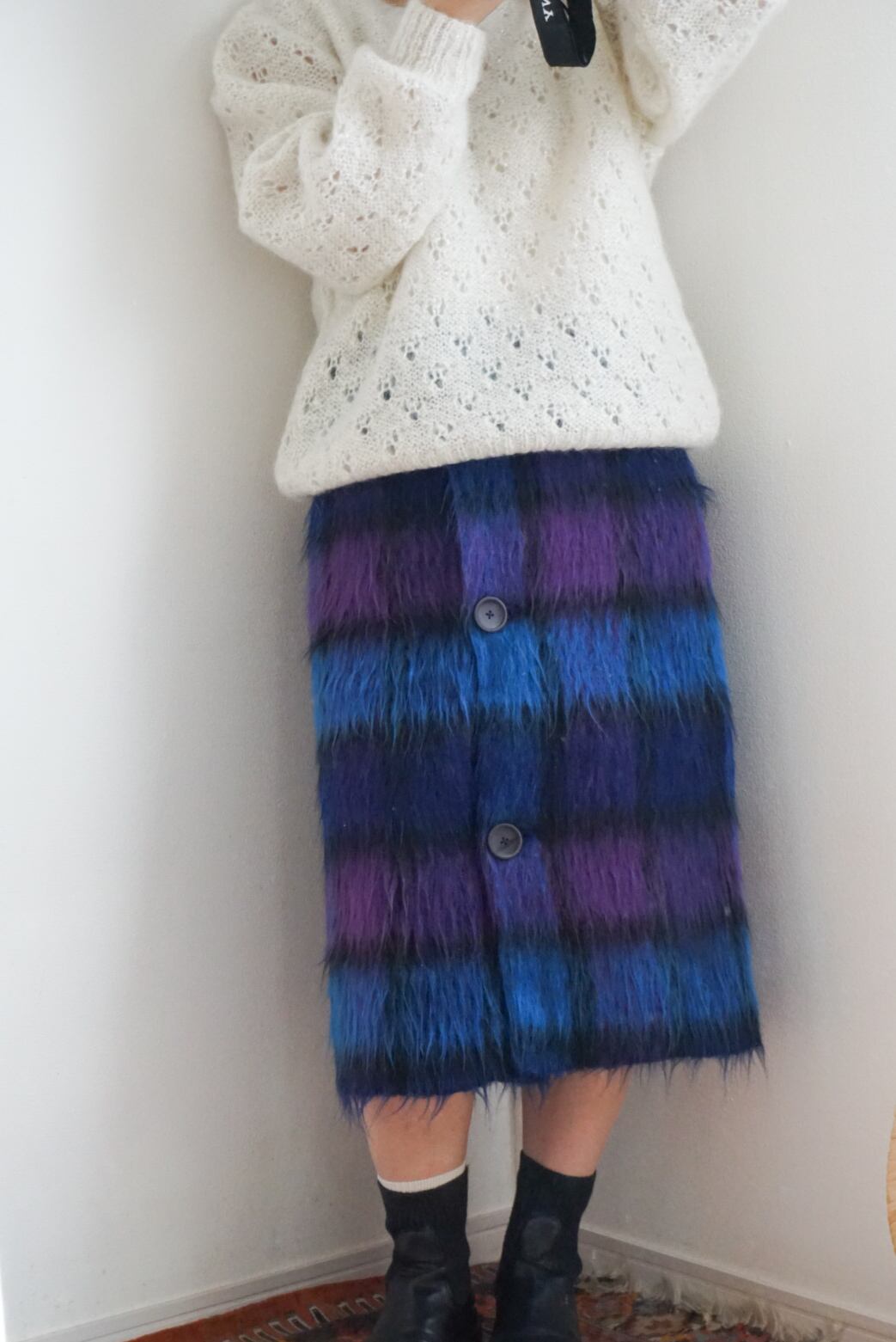 毛皮のようなふわふわカラフルでかわいいタイトロングスカート。