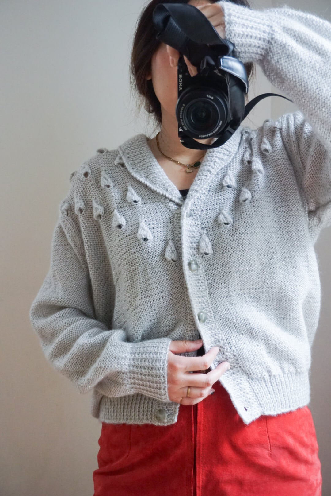 人気のビンテージモヘアウールグレーシルバーハンドメイドカーディガン。