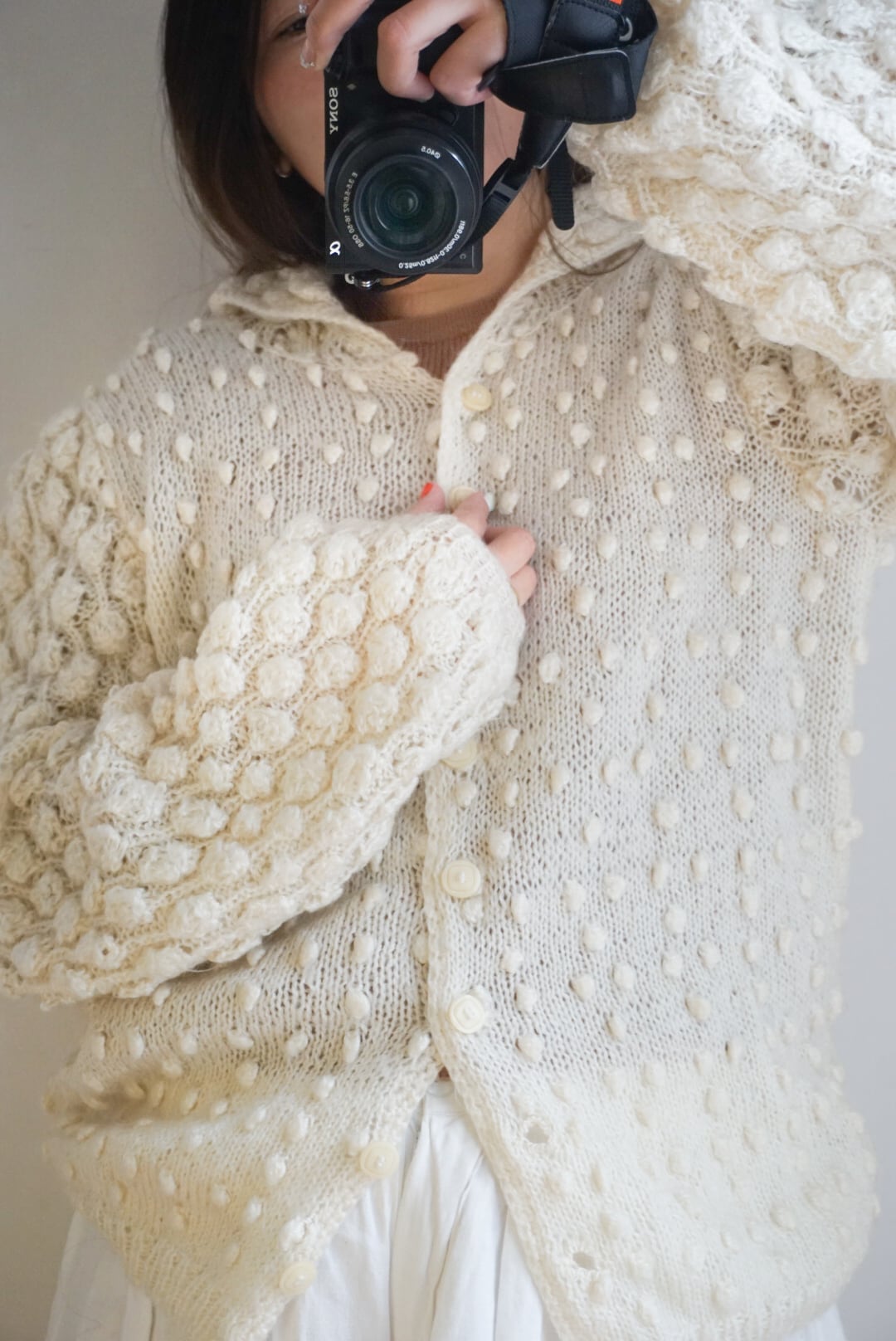 vintage wool handknit popcorn cream cardigan