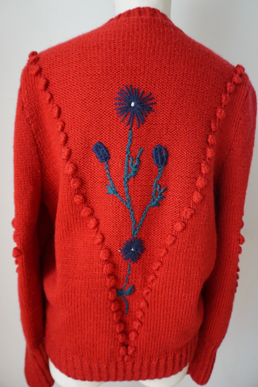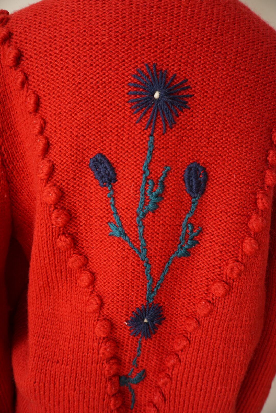 人気のレッドポップコーンニットフラワー刺繍オーストリアンカーディガン。