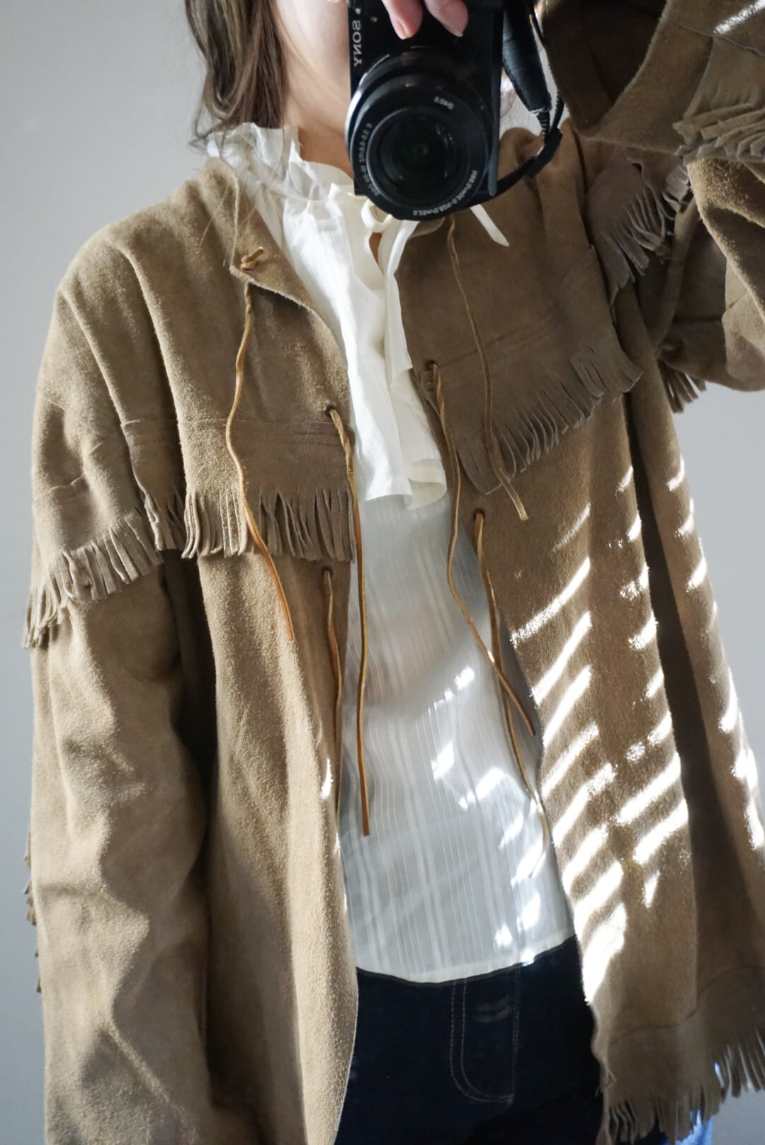 柔らかなスエード素材が特徴で、ヴィンテージ感あふれる一着です。着るだけでスタイルが一変し、個性を演出するのに最適なアイテムです。
