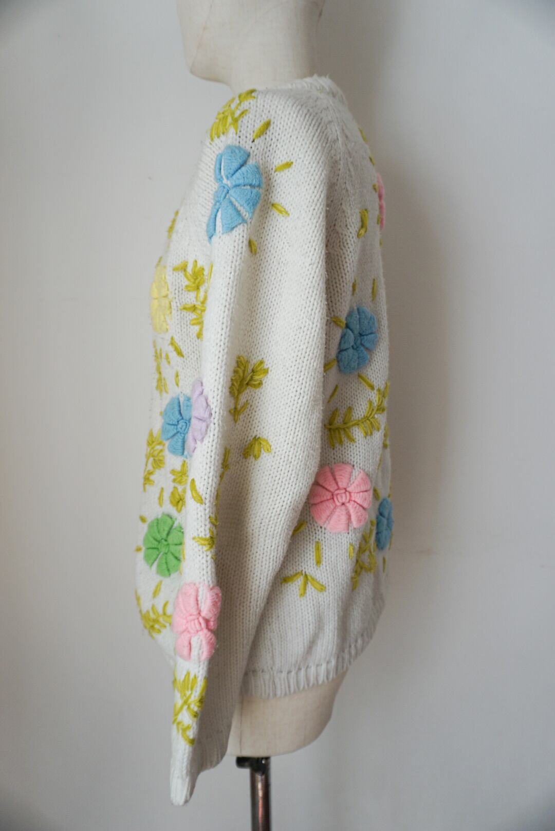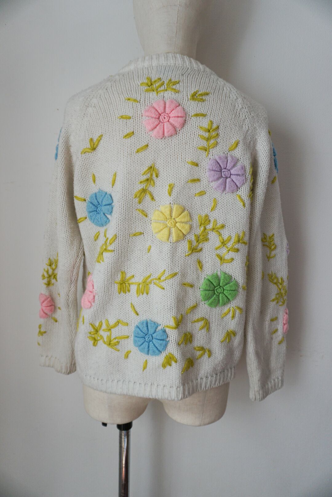 華やかな花の刺繍が印象的なカラフルなヴィンテージカーディガン。