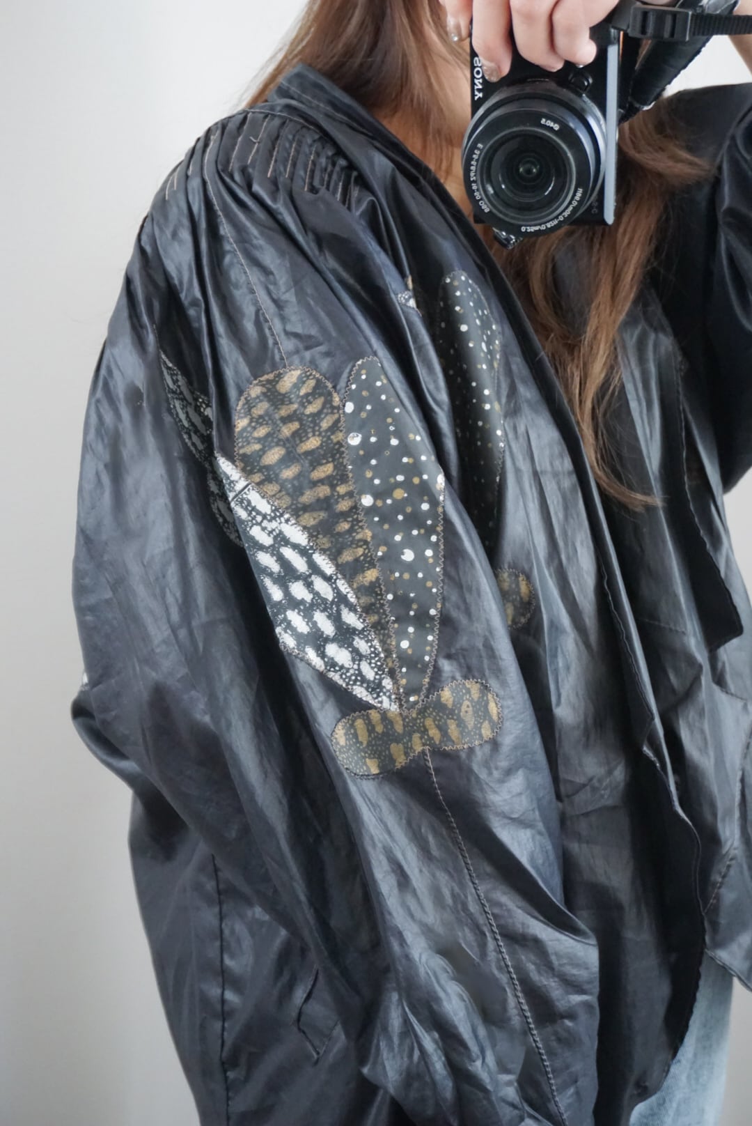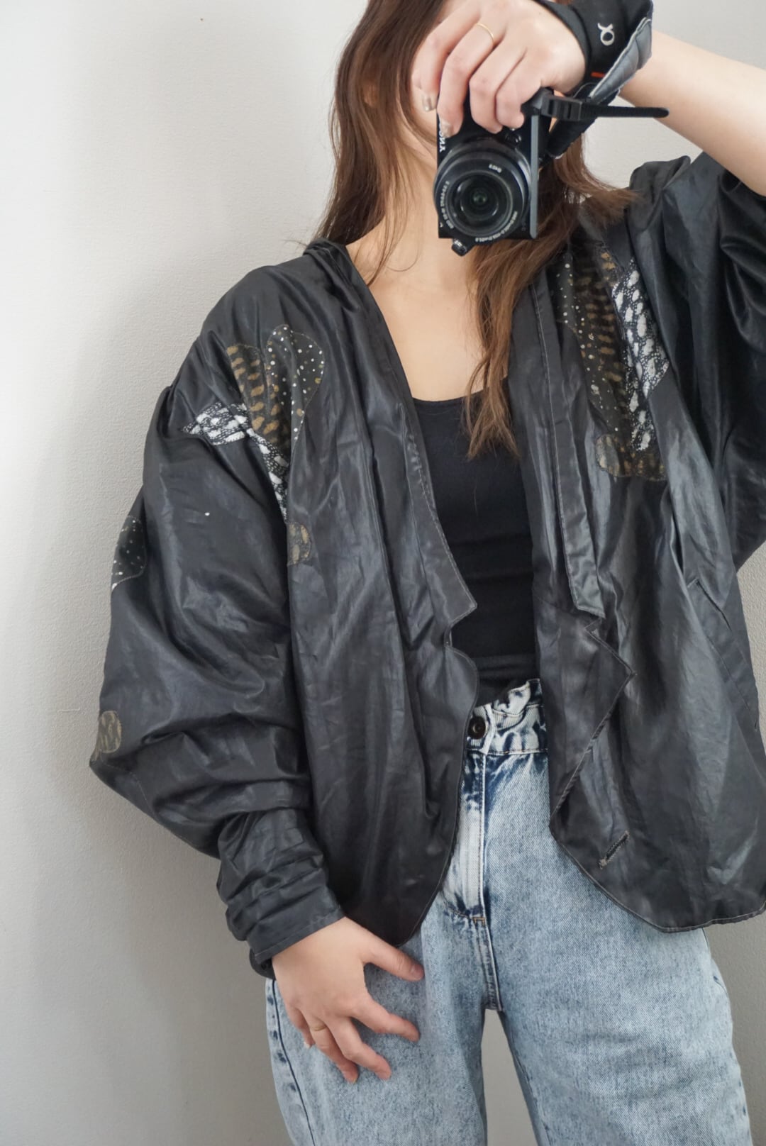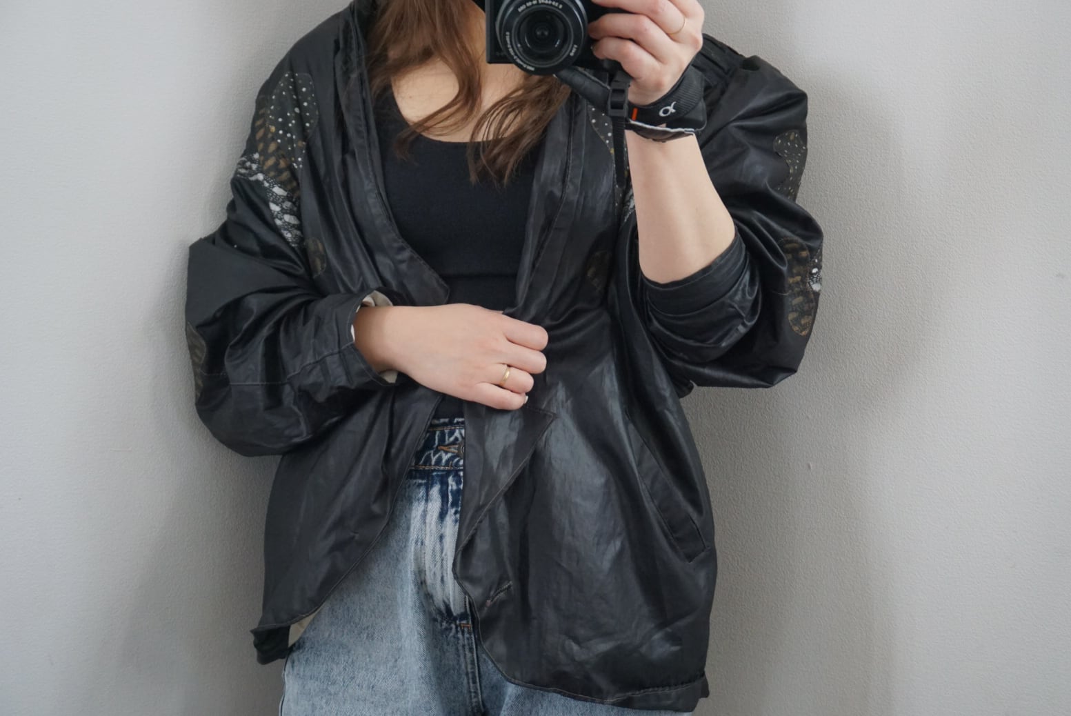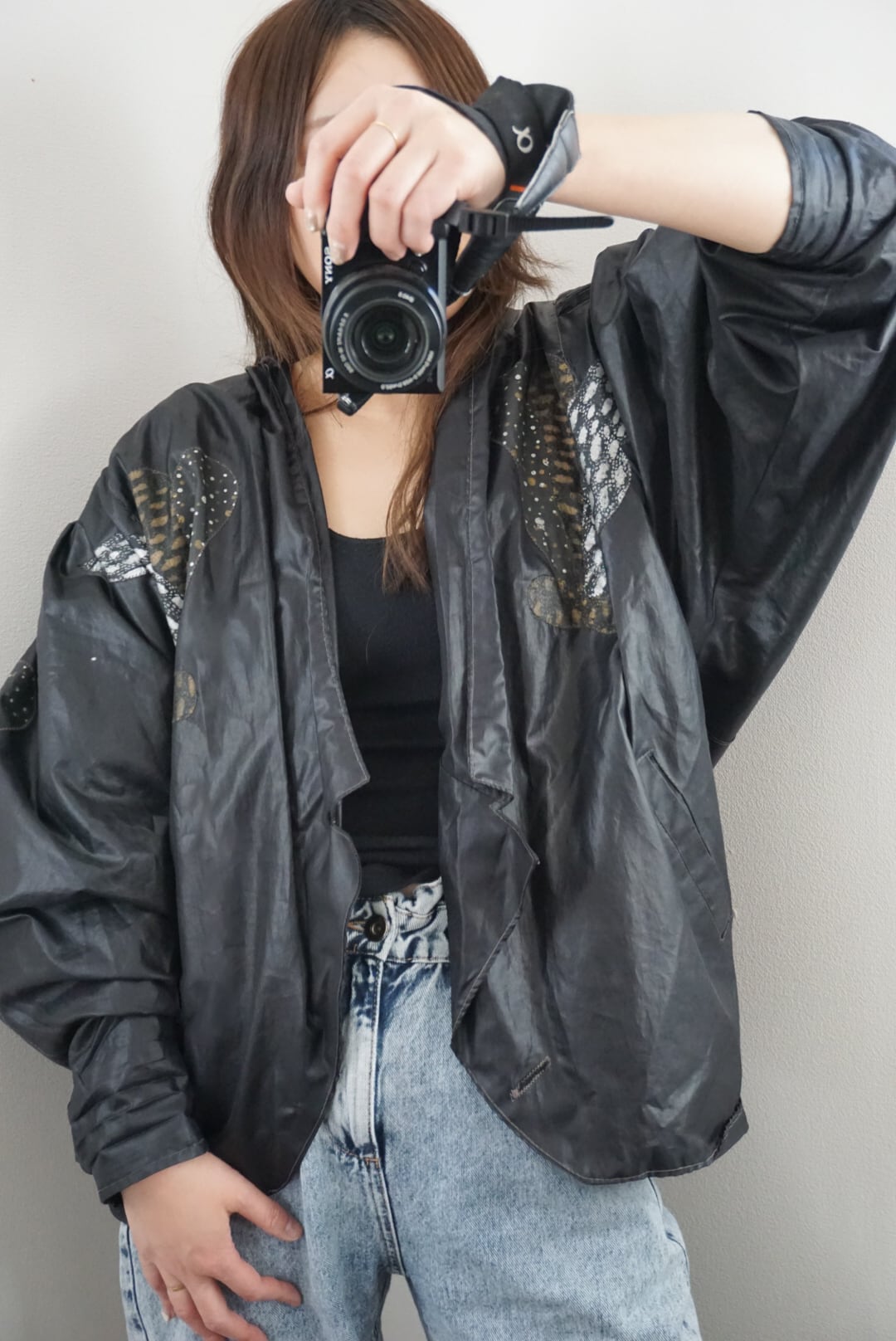 1980年代のヴィンテージブラックナイロンカーディガンです。