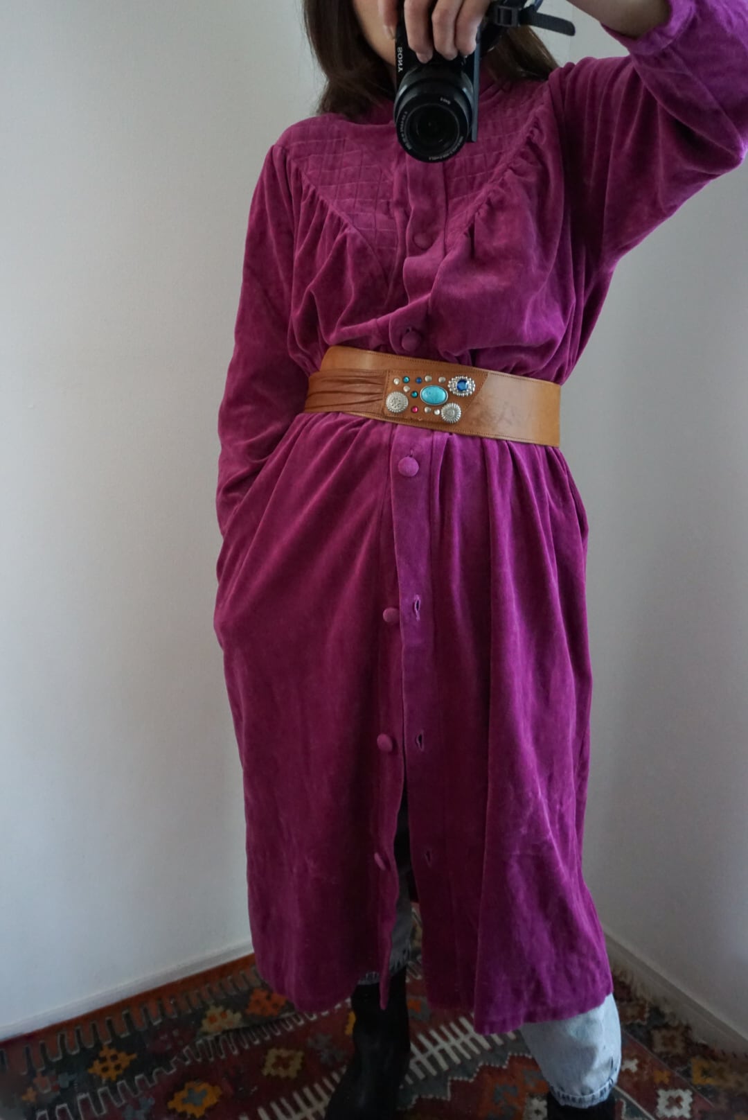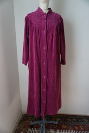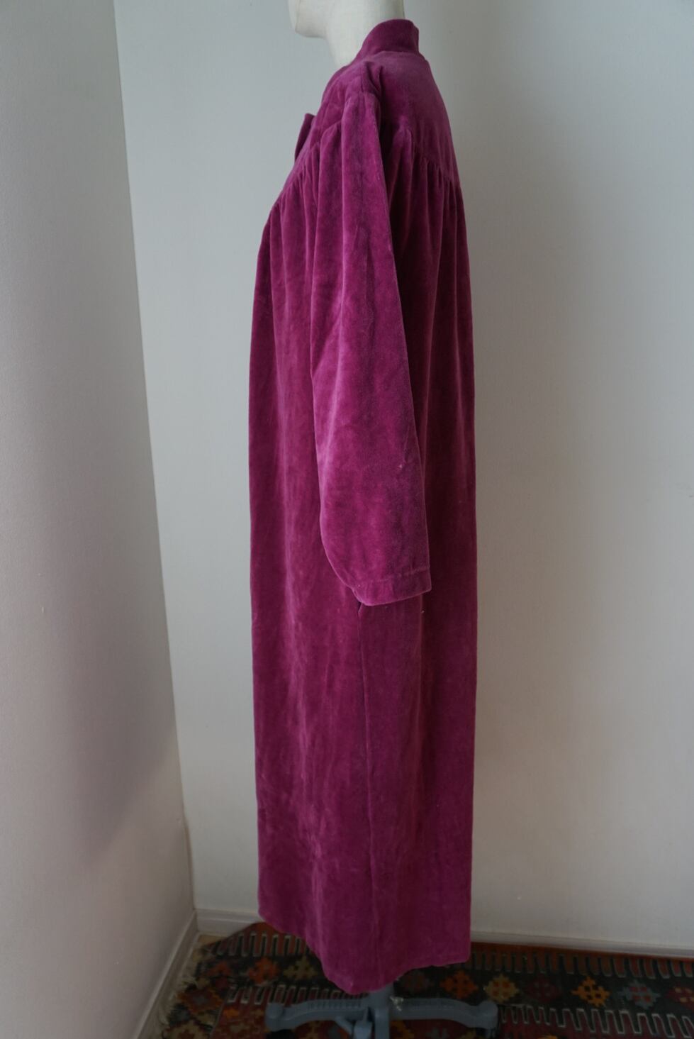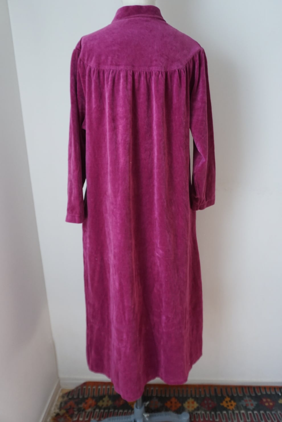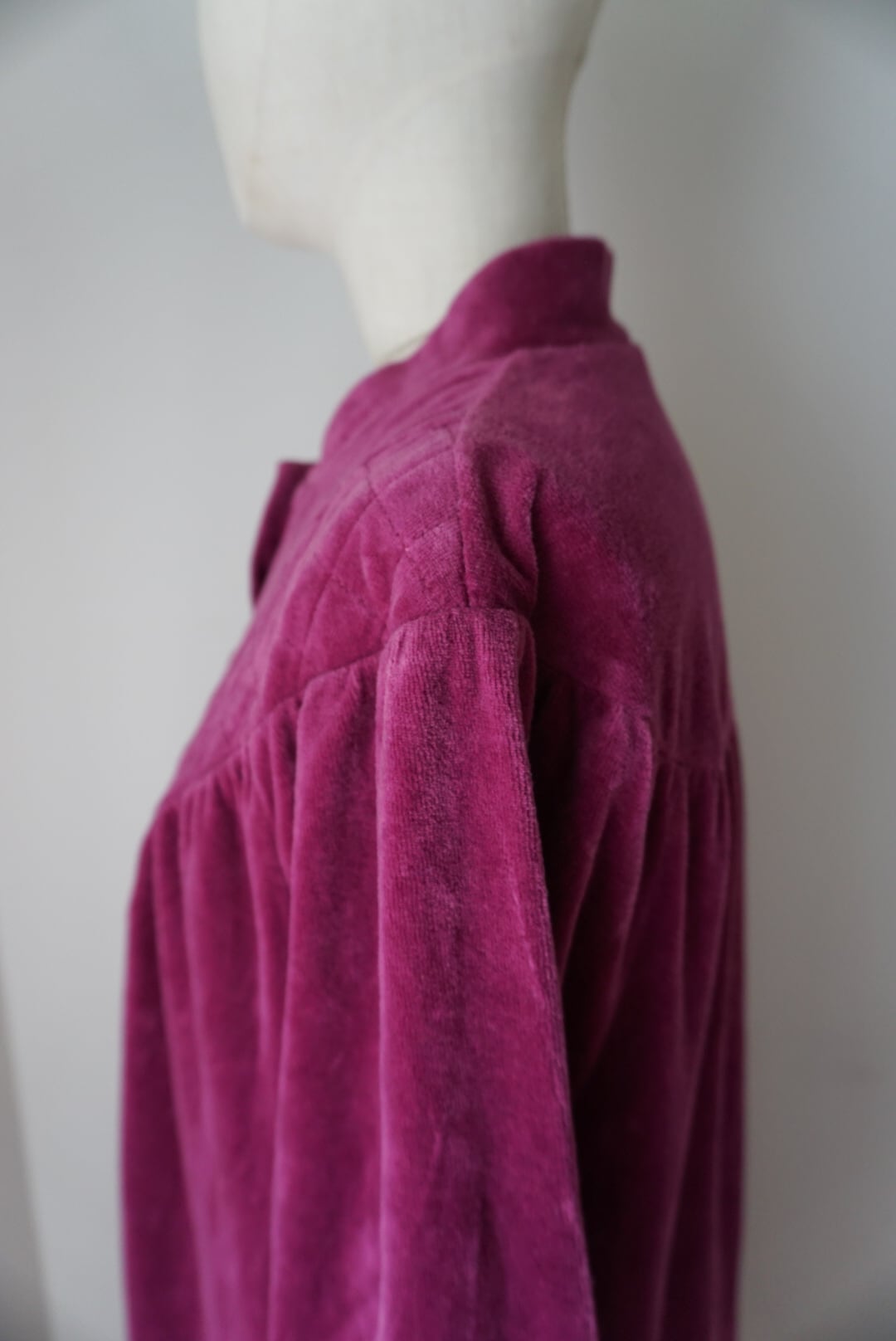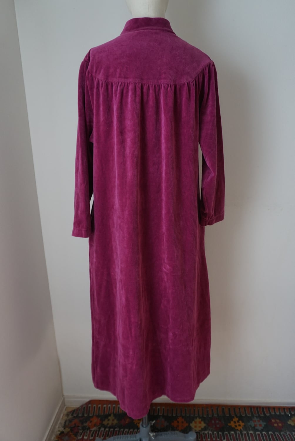 このナイトドレスは、柔らかなピンクのヴェロア素材が特徴で、優雅でありながらもリラックスした雰囲気を演出します。