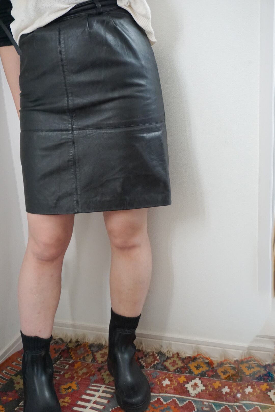 1980年代のヴィンテージレザーブラックタイトスカート。